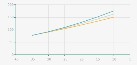 | 蒸發溫度 | 制冷量+/-5% | 能耗+/-5% | 現在能效+/-5% | 氣體流速+/-5% | 能效+/-7% | ||||