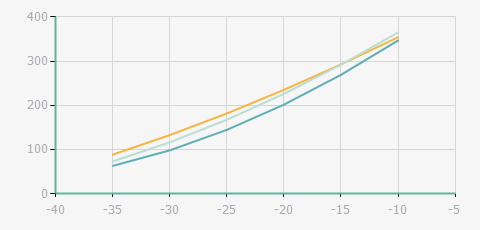 | 蒸發(fā)溫度 | 制冷量+/-5% | 能耗+/-5% | 現(xiàn)在能效+/-5% | 氣體流速+/-5% | 能效+/-7% | ||||