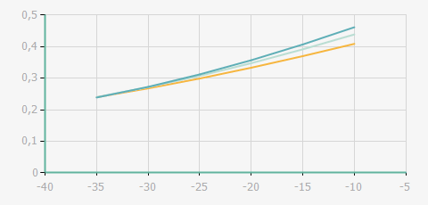 | 蒸發(fā)溫度 | 制冷量+/-5% | 能耗+/-5% | 現(xiàn)在能效+/-5% | 氣體流速+/-5% | 能效+/-7% | ||||