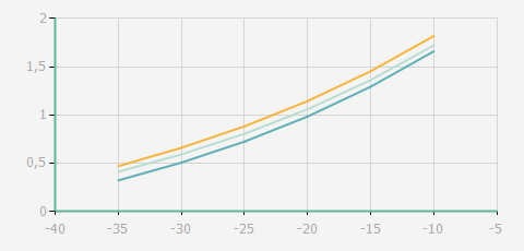 | 蒸發溫度 | 制冷量+/-5% | 能耗+/-5% | 現在能效+/-5% | 氣體流速+/-5% | 能效+/-7% | ||||