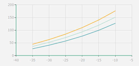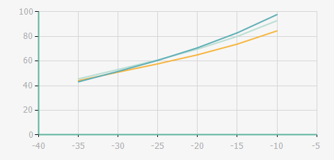 | 蒸發(fā)溫度 | 制冷量+/-5% | 能耗+/-5% | 現(xiàn)在能效+/-5% | 氣體流速+/-5% | 能效+/-7% | ||||