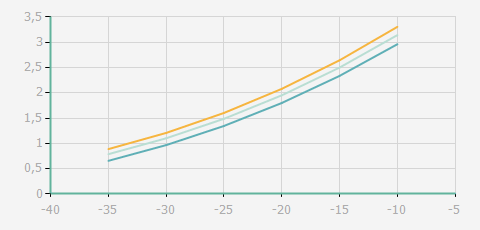 | 蒸發(fā)溫度 | 制冷量+/-5% | 能耗+/-5% | 現(xiàn)在能效+/-5% | 氣體流速+/-5% | 能效+/-7% | ||||