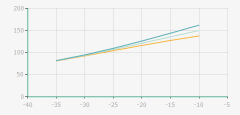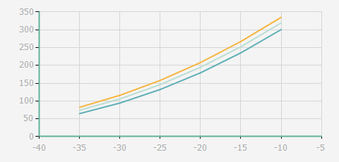 | 蒸發(fā)溫度 | 制冷量+/-5% | 能耗+/-5% | 現在能效+/-5% | 氣體流速+/-5% | 能效+/-7% | ||||